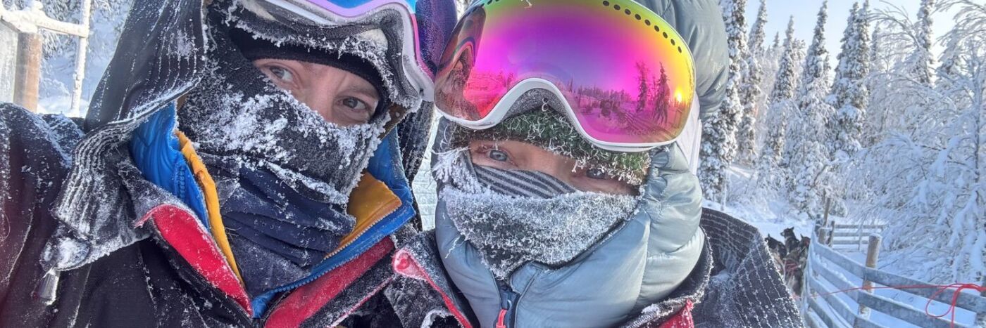 The route winds through frozen forests, across open tundra and along snow-packed trails and roads once used by the region’s lumberjacks. The scenery is vast and humbling. The air is crisp. Every breath feels sharp and alive.