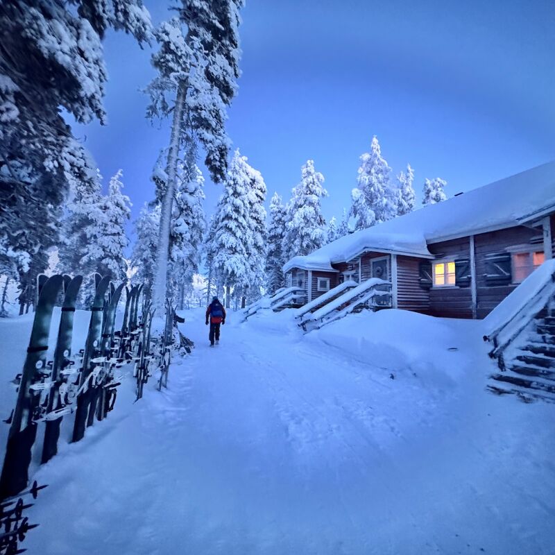 Your journey begins in the mountain village of Ylläs and concludes in the ski resort town of Levi. Both are under an hour from Kittilä Airport and Kolari train station, with convenient shuttle connections before and after flights and trains — making this remote adventure surprisingly accessible.