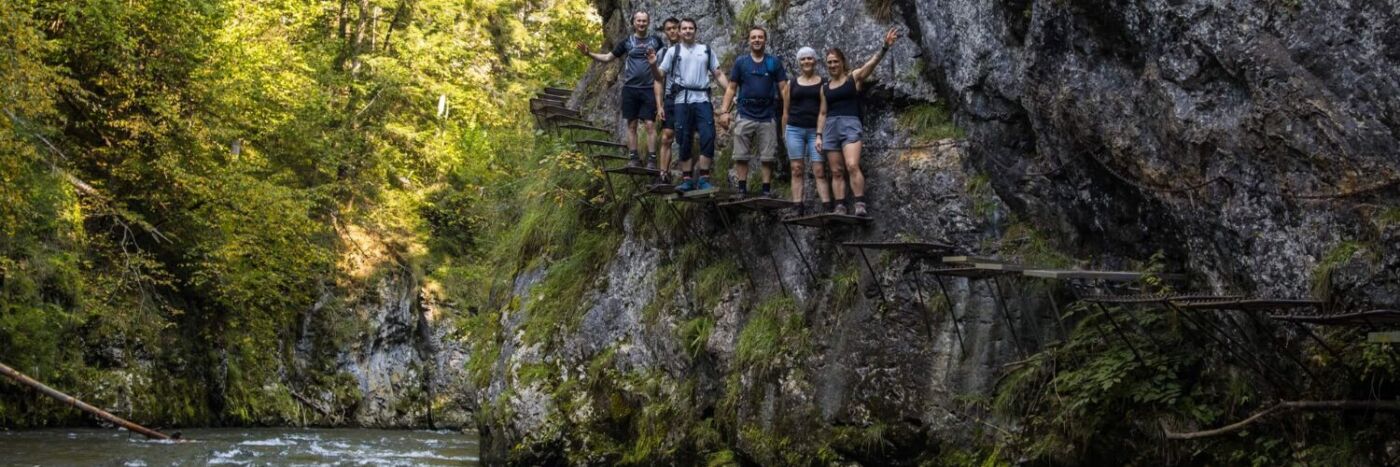 Sections of the route in Slovak Paradise National Park include ladders, catwalks and narrow ledges, which are sturdy, well-maintained and secured to the rock. You should, however, feel comfortable with heights – imagine climbing a sturdy ladder to the third storey of a building. Your guide will always be close by to offer support and guidance.