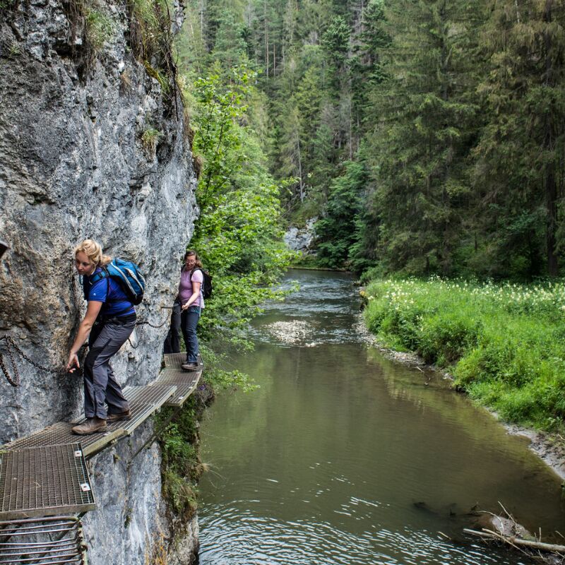 After a well-earned lunch stop at a mountain hut, continue through Prielom Hornádu Gorge, where a series of ledges and catwalks suspended above the Hornád River provide an exciting finale for those with a head for heights.