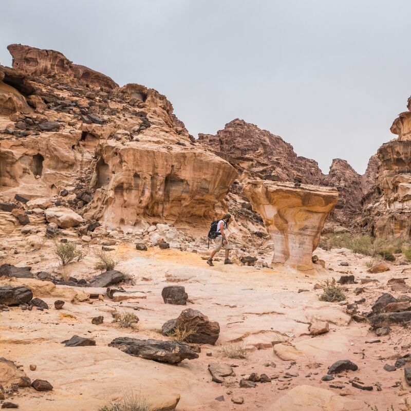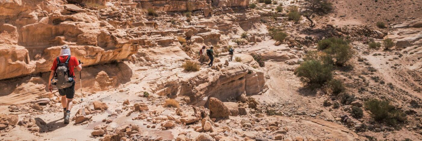 • Trek amidst sculpted sandstone landscapes along the Jordan Trail