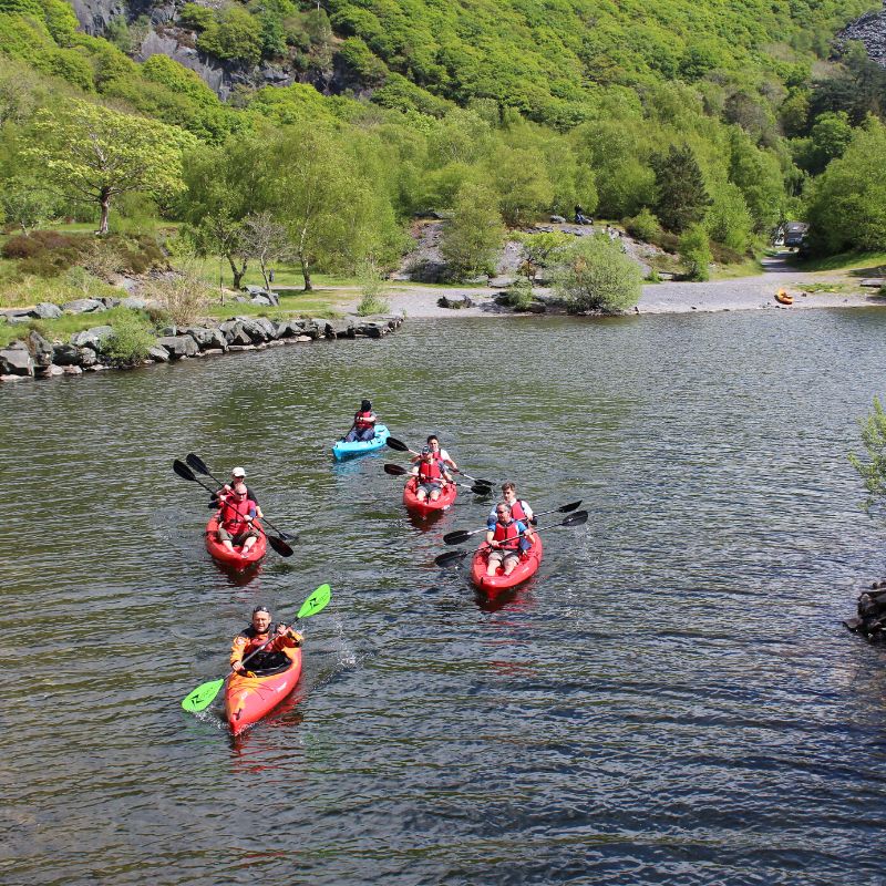 Kayaking section: Following a safety briefing and kayaking tuition, in pairs you’ll climb aboard your double-sit-on-top kayaks and paddle a circuit around Llyn Padarn. On a clear day, you may even catch a glimpse of the summit of Snowdon whilst you paddle this glacially formed lake.